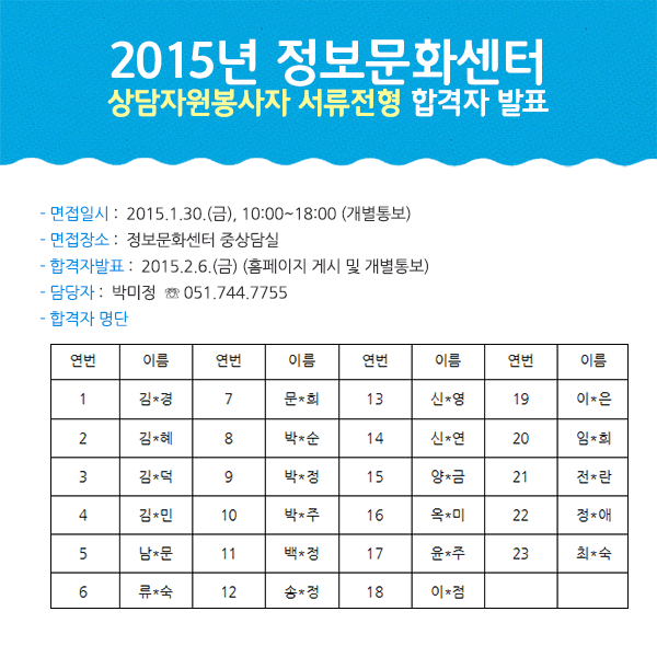 2015년 정보문화센터 상담자원봉사자 서류전형 합격자 발표